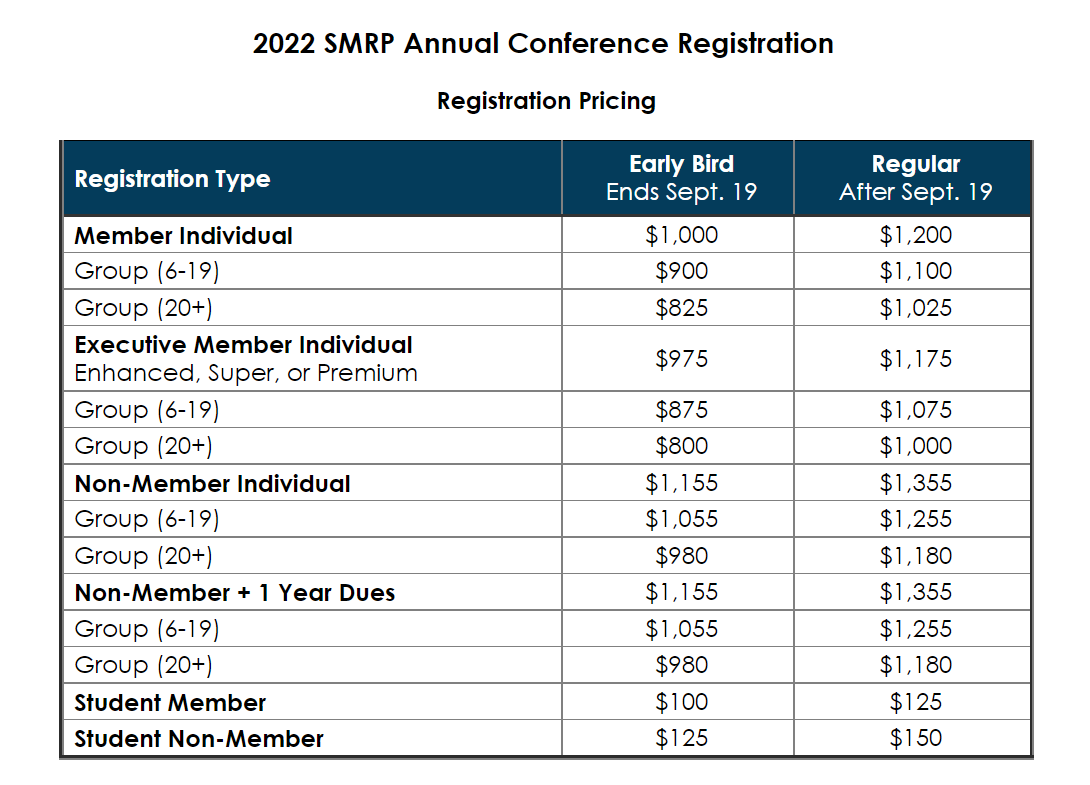 In 2022, the SMRP will be celebrating its 30th Annual Conference, happening October 17-20. Join professionals from around the world in Raleigh, NC for four days of education, networking, innovation and more.